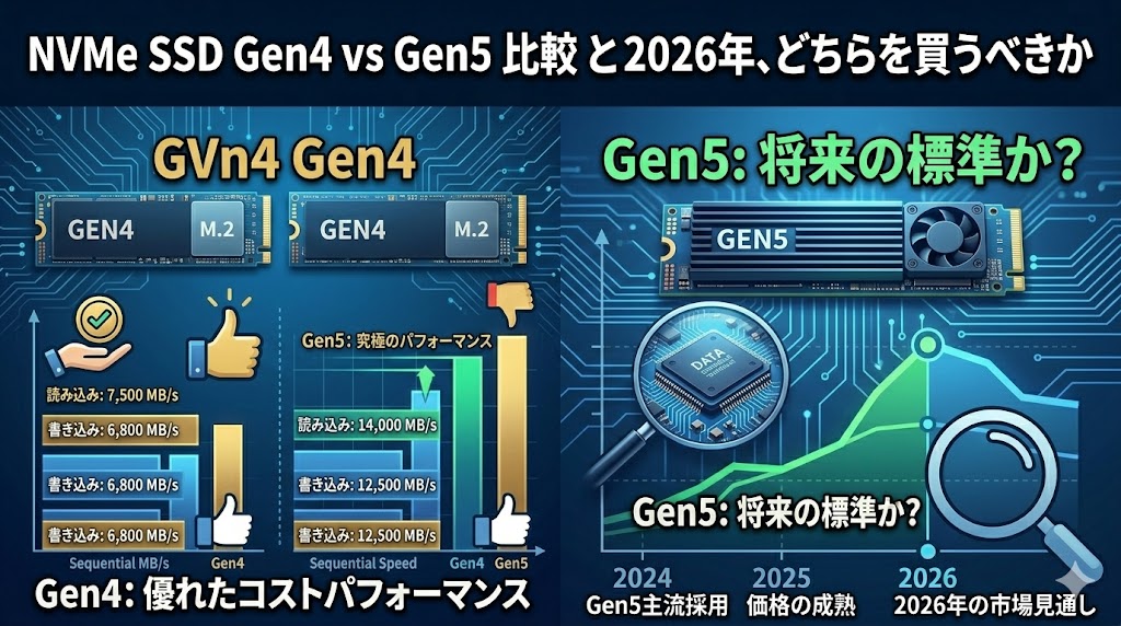 NVMe SSD Gen4 vs Gen5 比較 — 2026年、どちらを買うべきか
