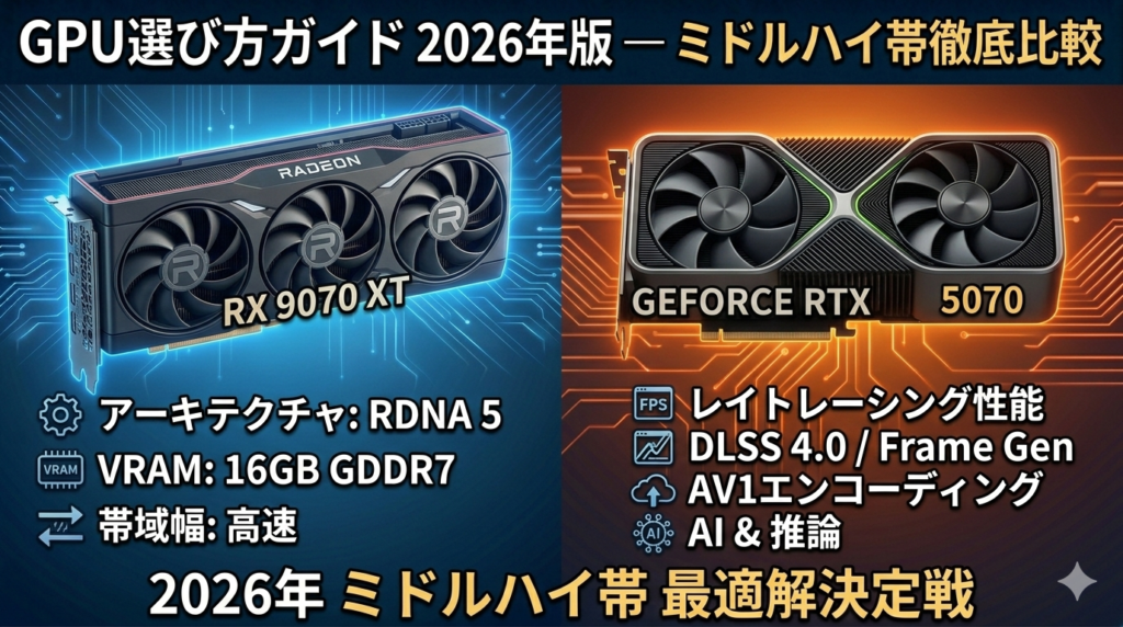 RX 9070 XT vs RTX 5070 徹底比較 — 2026年ミドルハイ帯の最適解はどちらか