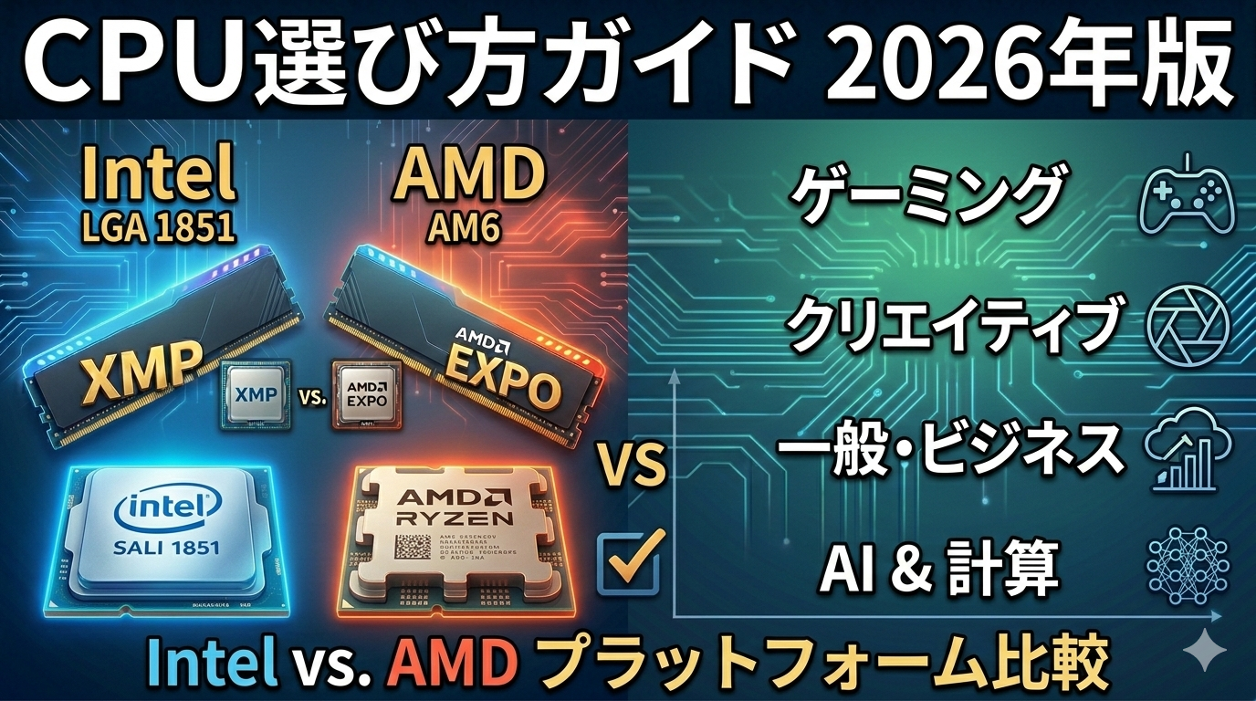 2026年のCPU選びを一言でまとめるなら、「ゲームならAMD、Adobe系ならIntel、迷ったらAMD」 だ。
