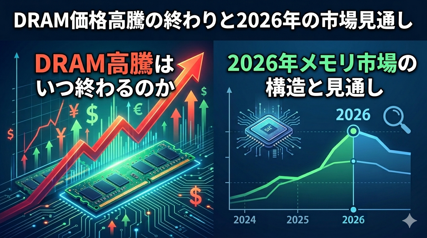 2026年のDRAM高騰は、AI需要の爆発、メーカーの寡占構造、DDR4生産終了という3つの構造要因が重なった結果であり、一時的なバブルではなく産業構造の転換点だ。